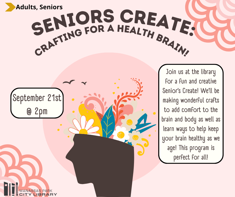 Join us at the library for a fun and creative Senior’s Create! We’ll be making wonderful crafts to add comfort to the brain and body as well as learn ways to help keep your brain healthy as we age. This program is perfect for all adults!
