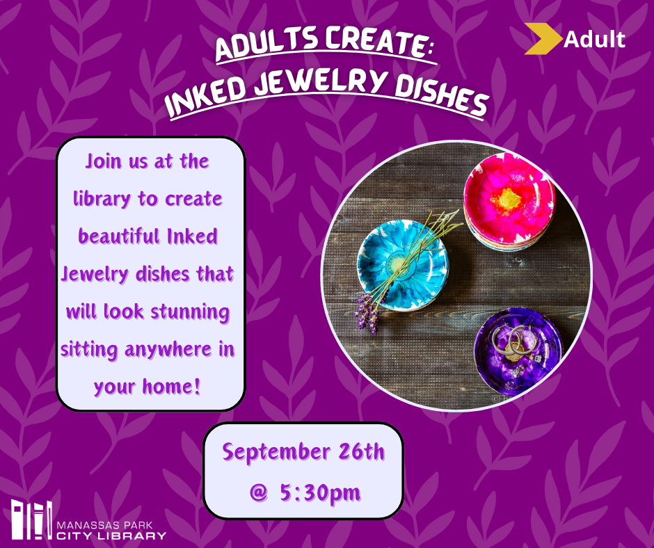 Join us at the library to create beautiful inked jewelry dishes that will look stunning sitting anywhere in your home!