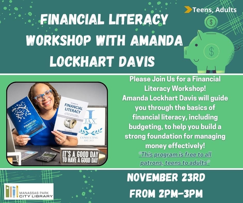 Please Join Us for a Financial Literacy Workshop! Amanda Lockhart Davis will guide you through the basics of financial literacy, including budgeting, to help you build a strong foundation for managing money effectively.