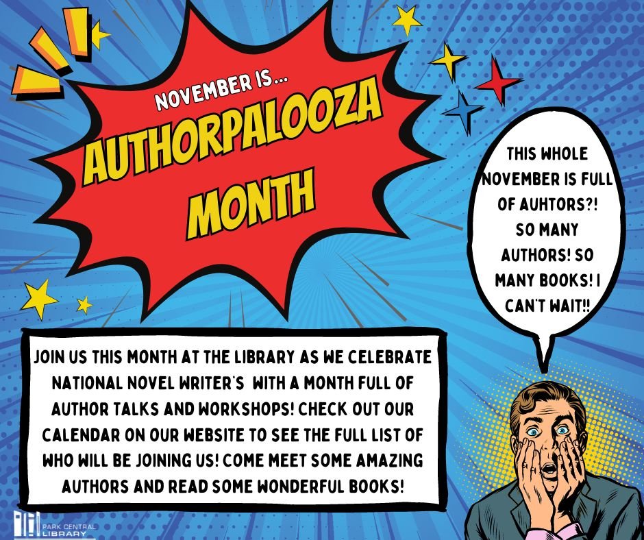 Join us this month at the library as we celebrate NaNoWriMo! Come meet wonderful authors and ready incredible books! We hope you enjoy a whole month of Authors!