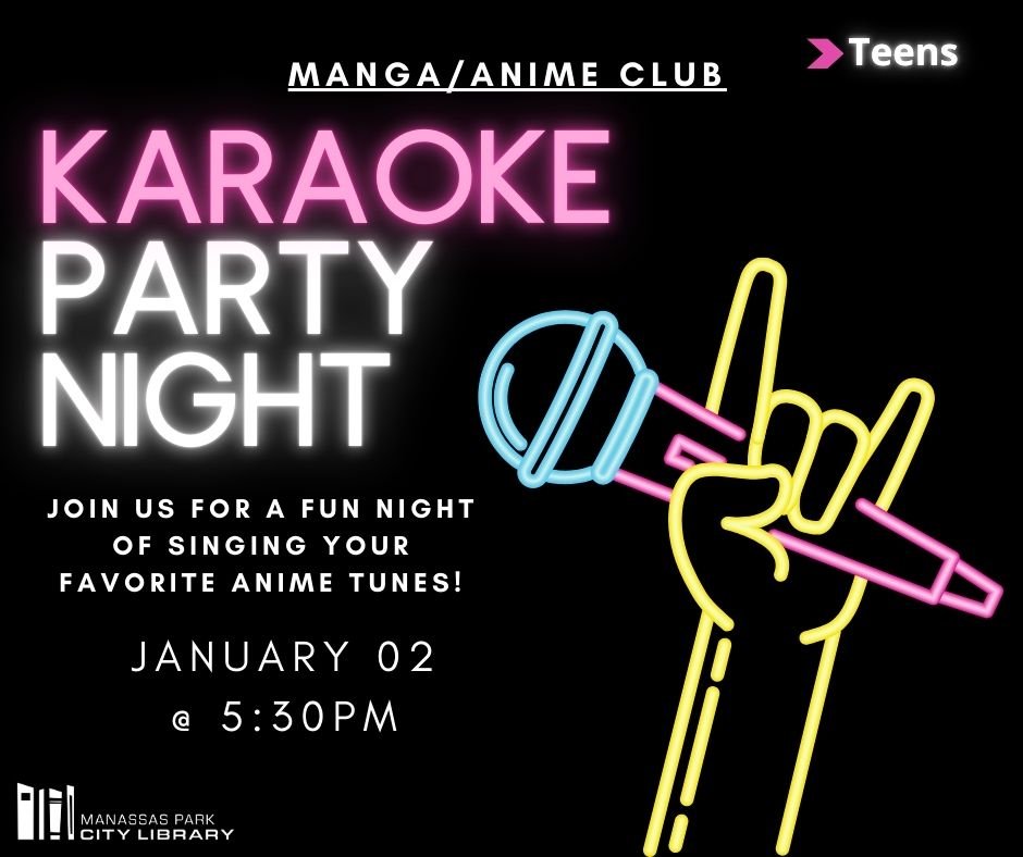 Join us for our monthly Manga/Anime club! Come sing your favorite Anime tunes!