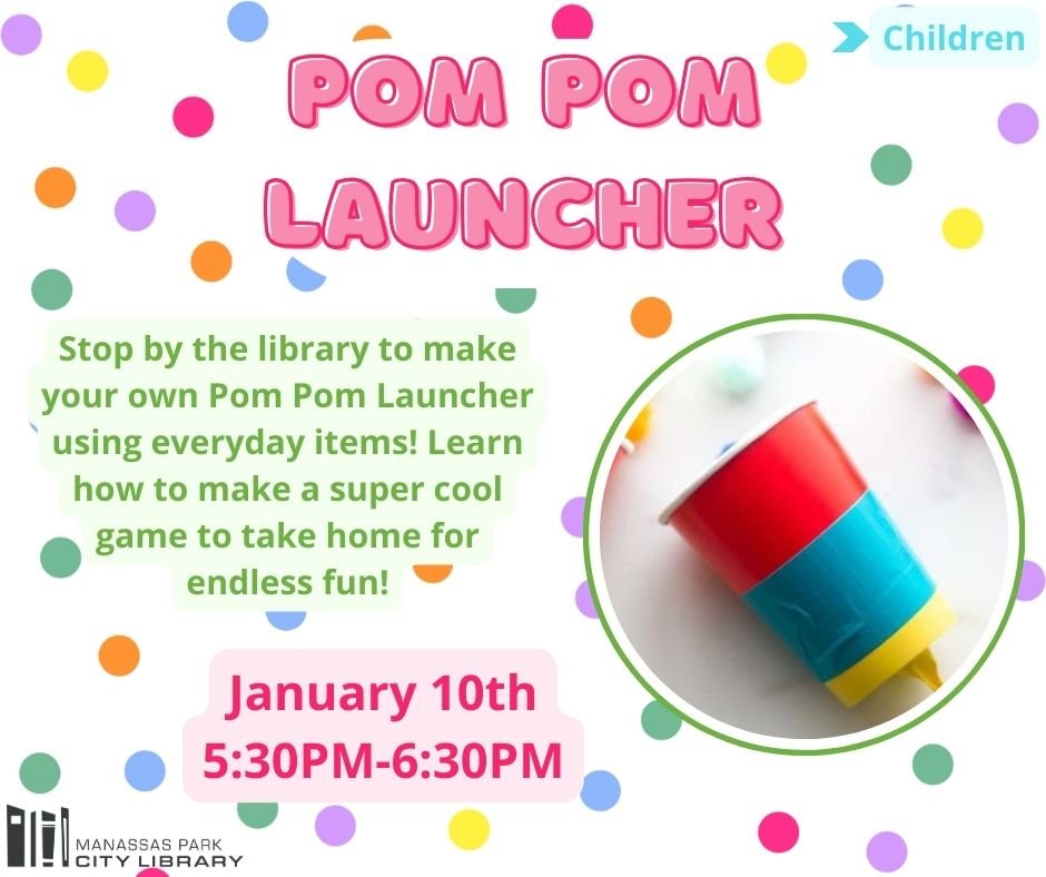 Stop by the library to make your own Pom Pom Launcher using everyday items! Learn how to make a super cool game to take home for endless fun!