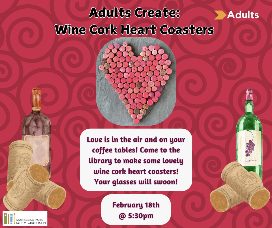 Love is in the air and on your coffee tables! Come to the library to make some lovely wine cork heart coasters! Your glasses will swoon!