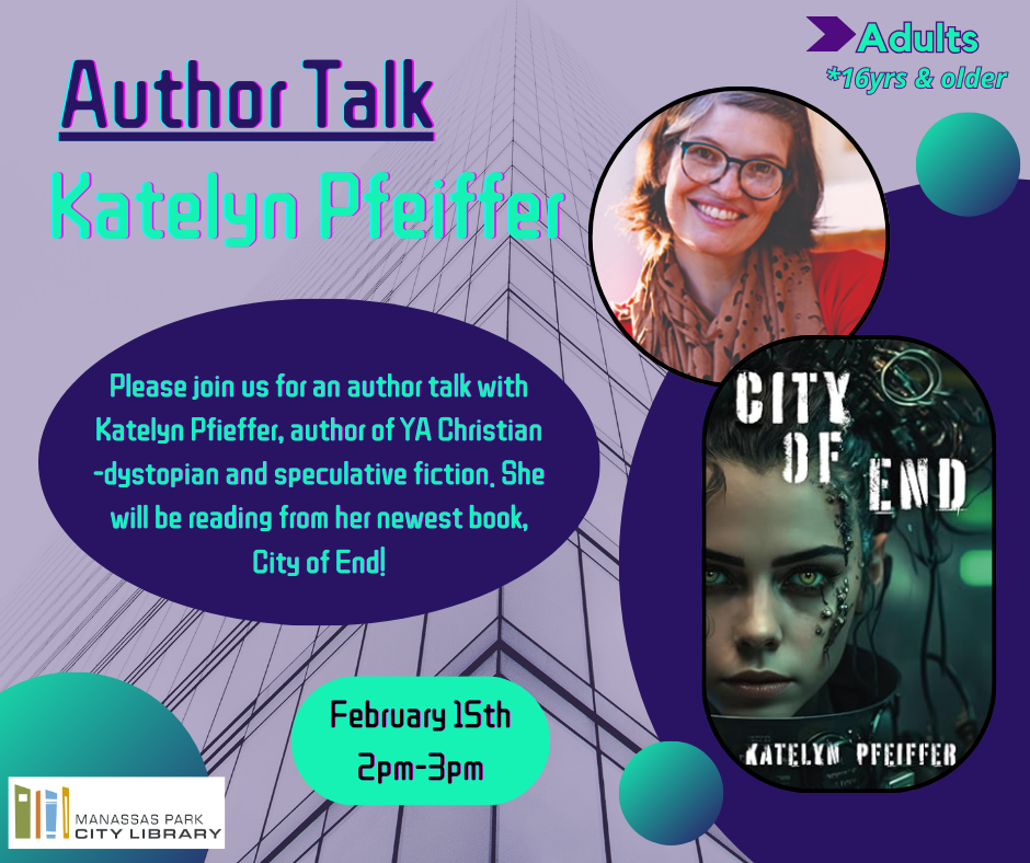 Please join us for an author talk with Katelyn Pfeiffer, author of YA Christian-dystopian and speculative fiction. She’ll be reading from her newest book, City of End!