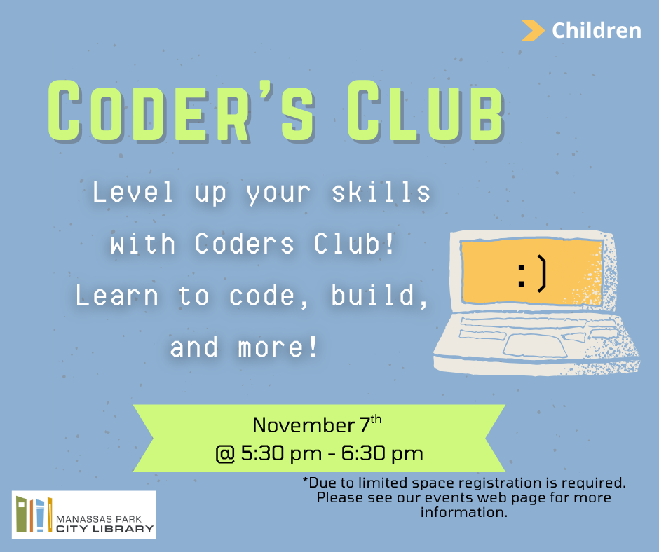 Level up your skills with Coders Club! Learn to code, build, and more!