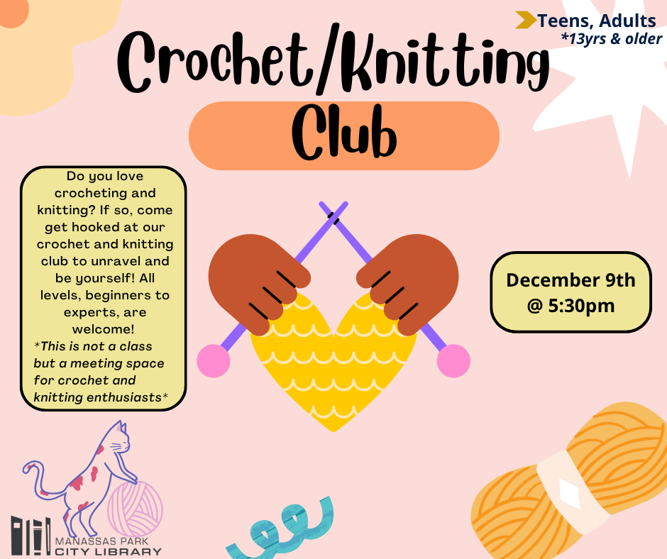 Do you love crocheting and knitting? If so, come get hooked at our crochet and knitting club to unravel and be yourself! All levels, beginners to experts, are welcome!