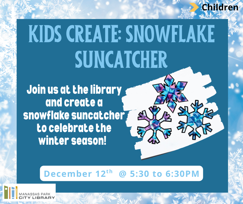 Join us at the library as we create a snowflake suncatcher to celebrate the winter season!